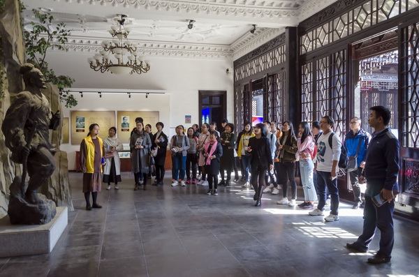 学院党委高度重视主题党日活动,对于参观路线和学习内容作了详细规划和周密部署。行车途中,师生党员利用空余时间开展了线路讲解和知识竞答活动。学生党务中心副主任、2016级本科生孙雅婕担任线路讲解员,借助事先准备的资料为大家作详细的路线讲解。姚剑英书记对于讲解的内容进行了丰富生动的补充,让师生党员更添了几分参观的期待。知识竞答也是由学生党务中心负责组织,题目涵盖了党史知识、党章党规、江阴人文地理知识等方面,内容丰富、形式活泼,师生党员参与积极,氛围活跃。