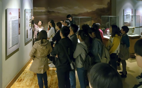 下午,师生党员先是参观了江阴学政衙署遗址,而后走进国民党江阴要塞司令部旧址暨江阴名人馆,在工作人员的引导下参观了先贤厅、军政厅、科技厅、教育厅和实业厅,认真聆听了季札挂剑、霞客远游、刘氏三杰等优秀的历史故事,了解了江阴上历史上灿若星河、群英荟萃的名人大家。来到江阴博物馆后,师生党员在义工讲解员的带领下重点参观了古代史馆,从江阴出土的石器、玉器、陶器和瓷器等文物,看到了江阴各个历史时期的发展进程。尤其是30件馆藏精品文物的展示,让师生党员看到了江阴先民们高超的技艺和辉煌的文化,由衷感叹古邑暨阳绵绵文脉,吴风楚韵生生不息并为能够在这片土地上生活和学习而感到自豪与荣耀。