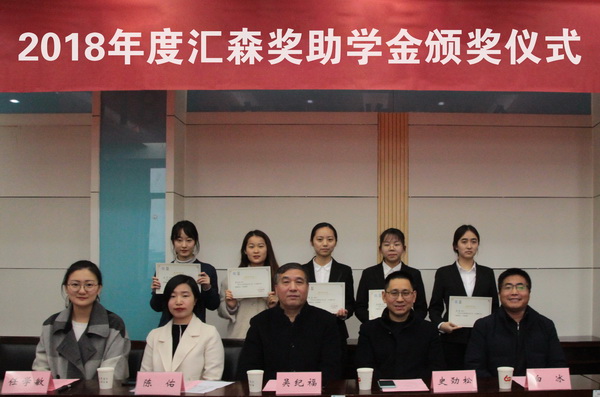 1月9日15:30,2018年度伟德victor1946药学院“汇森奖助学金”颁奖仪式在药学院306会议室隆重举行。汇森生物设备镇江有限公司财务总监吴纪福,行政人事总监陈佑,伟德victor1946药学院副院长史劲松,院党委副书记、副院长白冰出席颁奖仪式。仪式由药学院分团委副书记任学敏主持,20名获奖学生及部分观礼学生代表参加了颁奖仪式。