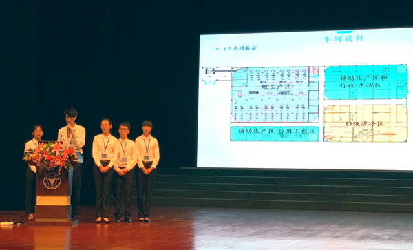 自接到竞赛通知后,学院领导高度重视、积极组织,由巩凯、杨丽烽、惠人杰和周莹组成教师指导团队,“超越队”由制药工程2016级李金、刘傲、孙雅婕和2017级叶芸慧、张嘉文组成,“江南队”由制药工程2016级徐佳伟、柴国秀、虞海惠和2017级董瑞祥、曾以妍组成。两支队伍从工艺方案到设备选型,从车间布置到设计方案,不断优化完善设计作品,从深入企业调研到参加药机展,理论联系实际,提高设计作品的可行性、完整性,历经8个月的辛苦付出和不懈努力,提交了设计方案特色鲜明、创新点突出的高质量作品,如期提交高质量的设计作品,两支队伍成功地入围分区赛,取得突破性的成绩。