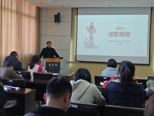 为进一步加强药学院党支部建设,压紧压实支部书记抓党建的政治责任,不断提高基层党建工作质量,2019年12月4日下午,药学院召开了党委扩大会议进行2019年度党支部书记述职评议考核工作。会议由药学院党委副书记、副院长白冰主持,学院党委委员、各党支部书记、党支部委员和师生代表参加了此次会议。