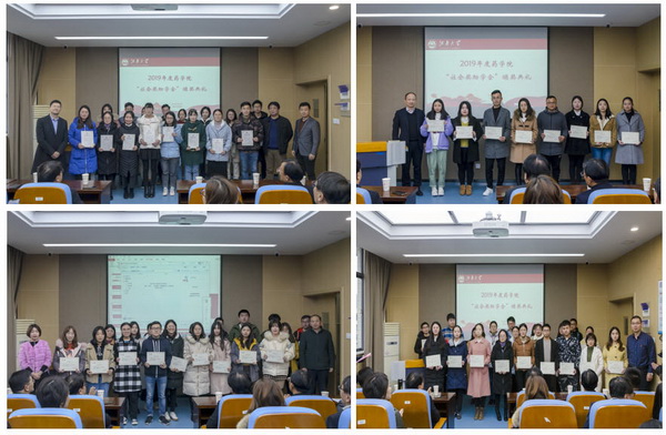 2019年度药学院社会奖助学金颁奖典礼由学院党委副书记、副院长白冰主持。他首先代表学院向各捐赠单位、爱心人士和参会师生汇报了近三年学院资助育人工作的整体概况,重点介绍了“春发”奖助学金、“汇森”奖助学金、“卓和”奖学(教)金以及“荣药未来”奖助学金的设立以及资助情况。无锡普睿生物环保科技有限公司董事长李力桦宣读了获奖名单,天津春发生物科技集团有限公司产品总监刘鹏、汇森生物设备镇江有限公司副总经理戴宏柏、南京奥力科学仪器有限公司总经理常文东、岛津企业管理(中国)有限公司区域经理马文强、无锡傲锐东源生物科技有限公司副总裁张扬、卓和药业集团有限公司副总经理徐建国等嘉宾先后为66名获奖师生颁奖,获奖代表也先后向嘉宾赠送感恩卡。徐建国先生作为捐助方代表表示,能够助力学子的成才成长是企业的责任和担当,也是大家的共同的初衷与期望,愿与药学院一道携手发展,共创辉煌。制药工程1601班本科生马梦瑶代表获奖学生发言,表示将以此为激励,努力奔跑,追随梦想,不辜负社会贤达和老师所寄予的厚望。药学院党委书记姚剑英作总结讲话,她希望药院学子能够学会感恩,能够体悟创业的艰辛,多了解捐赠人的奉献事迹。心怀对生命的敬畏,在制药领域刻苦钻研、潜心研究,成为新时代的药学人才!